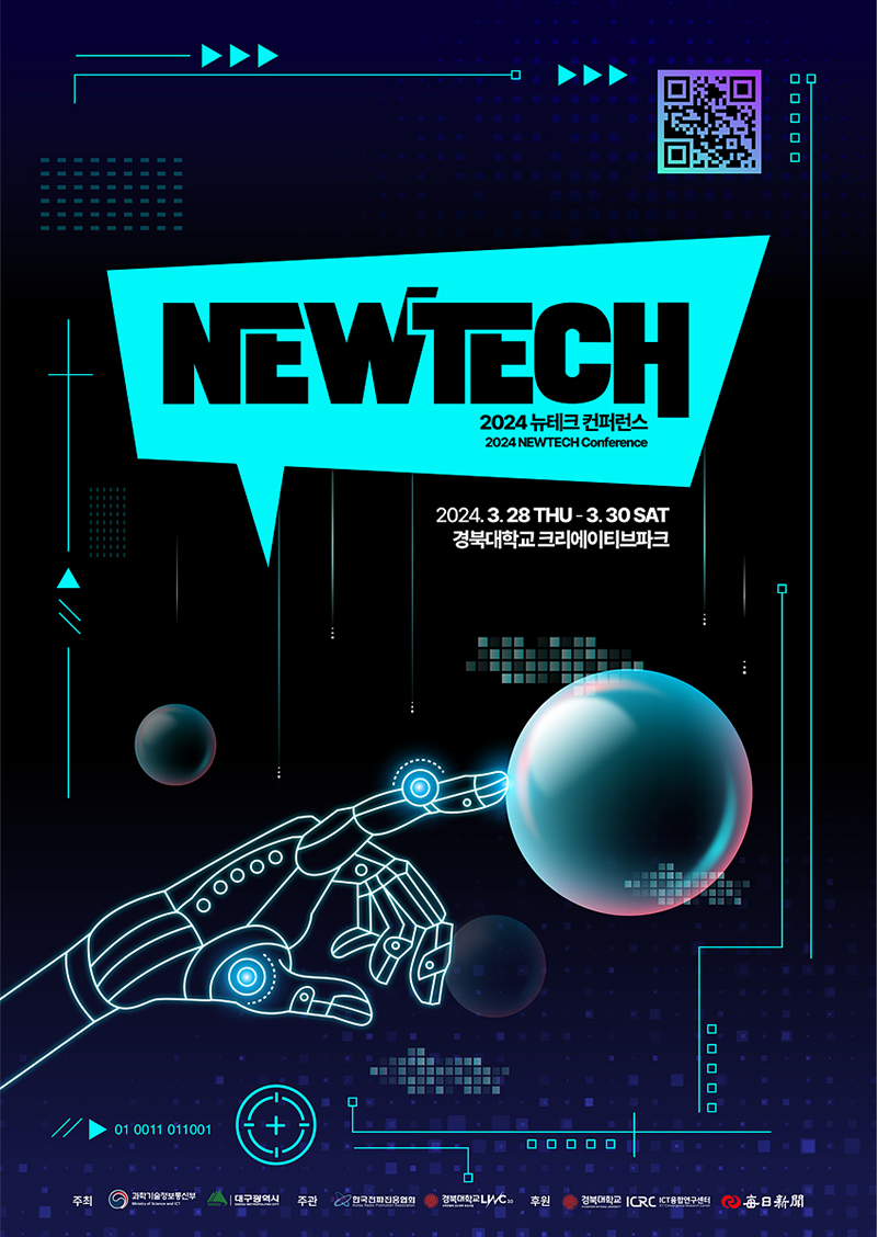 인공지능, 메타버스 등 뉴테크 기술 동향 및 지역산업 육성정책에 대해 논의하고 사업화 전략을 공유하는 ‘2024 뉴테크 컨퍼런스’가 3월 28일(목)부터 3월 30일(토)까지 경북대 크리에이티브 파크에서 개최된다.