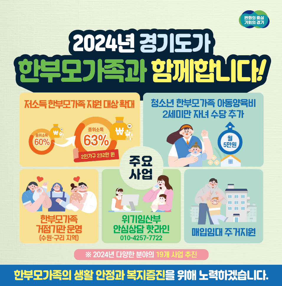 #경기 #경기도 #경기뉴스광장 #Gyeonggi #Gyeonggido #가정의 달 #한부모 가족 #한부모 가족지원사업 #양육비 #생계비 #자립지원 #저소득 한부모가족 지원 #청소년한부모 자립지원 #한부모가족 아동양육비 지급 대상 확대 #경기도 한부모가족 지원 거점기관 #위기임산부 안심상담 핫라인 #공동생활가정형 #매입임대 주거 지원 사업 #수원 고운뜰 #안산 건강가정지원센터 #무주택 #광명 아우름 대안학교 #미혼모 #정서상담 #부모교육 #가족 캠프 #아동보호 #24시간 안심상담 #아이돌봄 #교육지원