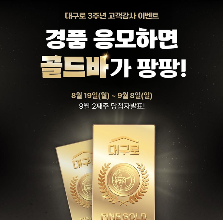 이번 3주년 이벤트는 대구로의 괄목할 만한 성장에 걸맞게 1등에 골드바 7.5g 지급 등 파격적이고 다채롭게 진행된다.